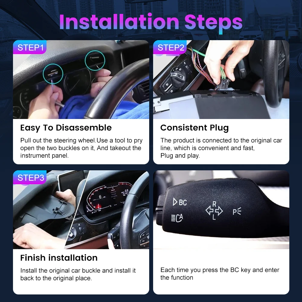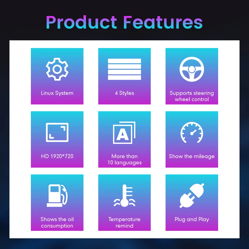 1. Easy installation: Plug and play, non-destructive installation without breaking wires, no flashing required, no matching required, retaining the original car instrument motherboard