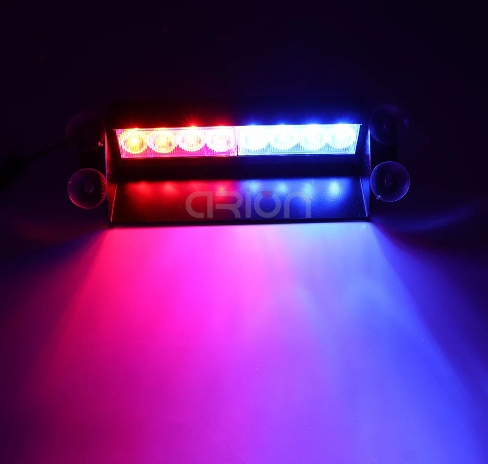 Left 4 lights and right 4 lights flash 3 times at the same time, repeat continuously.Color: Red/Blue, Blue, Red, Yellow