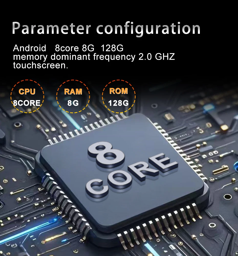 Andiord 13system, 8-core processor, running memory 8G, storage memory 64G, main frequency up to 2.0GHz, equipped with HD1280X480P touch screen.